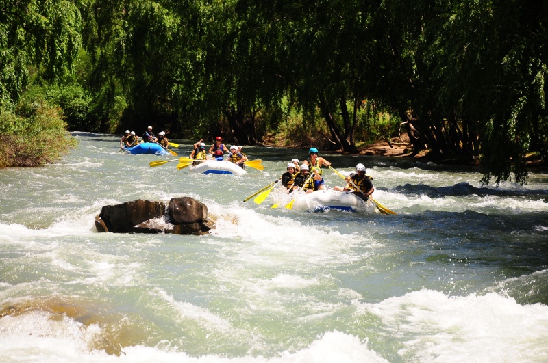 Se realiza en el Río Atuel, un rio clase II, su duración es de casi dos horas de rio.