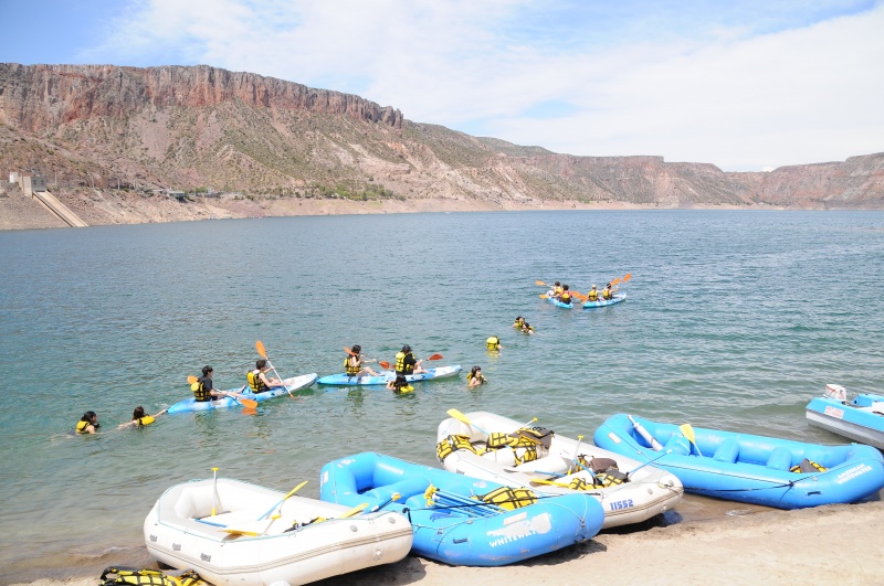 La actividad de aventura consiste en remar sobre el lago Valle Grande en gomones y kayaks, visitaremos lugares que nos permitiran el disfrute del agua y del paisaje que nos ofrece el lago, donde pasaremos la mañana o la tarde disfrutando del agua y del sol y la playa.